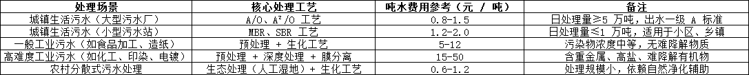 結(jié)合當(dāng)前政策要求、技術(shù)水平和區(qū)域差異,以下為不同場景下的污水處理費用參考范圍(含核心支出,不含特殊補貼),供各主體核算時對標(biāo):
